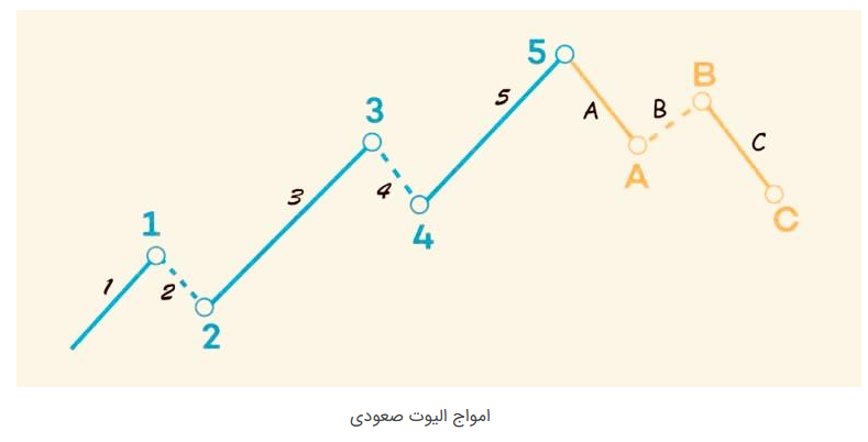 (نظریه موج الیوت اصولاً برای میانگین های بزرگ بازار سرمایه به کار میرود مخصوصاً برای میانگین صتایع داو جونز ابتدایی ترین تعریف این نظریه است که بازار سرمایه بر اساس یک آهنگ یا ریتم مکرر شامل پنج موج افزایشی حرکن میکند که در ادامه به سه موج کاهشی همراه میشود)