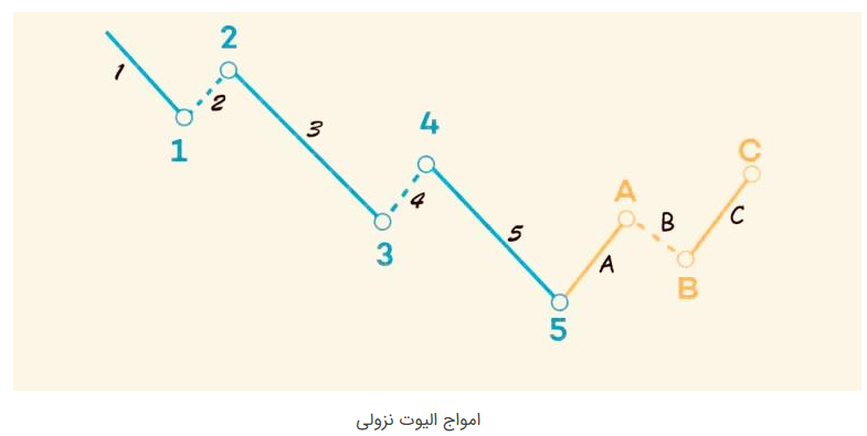 1- یک دوره کامل افزایشی بازار از هشت موج شامل پنج موج پیش رونده و سه موج کاهشی تشکیل شود