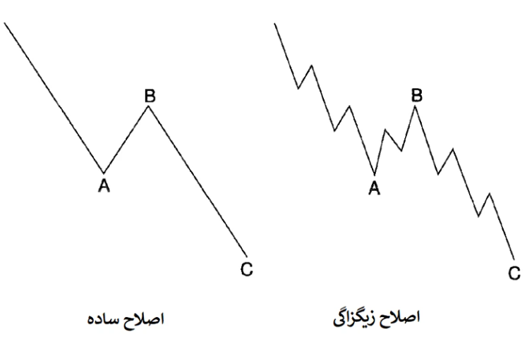 4- دو نوع الگوی تصحح رایج الگوهای زیگزاگی 5-3-5 هستند